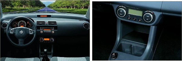 鈴木雨燕的車身尺寸不是很大,不過圓潤的形象非常可愛,前大燈為不規(guī)則的四邊形,活像兩個炯炯有神的大眼睛,鍍鉻的條形橫貫前中網(wǎng),佩戴鈴木家族標(biāo)志,十分精致。前中網(wǎng)和前進(jìn)氣格柵之間的前保險杠部分很寬,給人一種安全感。黑色內(nèi)飾比較運動化,模具精致度不錯,不過材質(zhì)本身手感有些單薄。