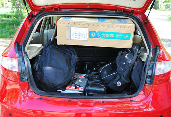 三廂版車型繼承了老風(fēng)云的優(yōu)秀傳統(tǒng),采用了整體開合式的掀背設(shè)計,所以將后座放倒后,其裝載容積與兩廂車差異不大,但是由于后窗高度部分要略低于兩廂車,所以最終沒有裝載下這個大號紙箱。在這項測試環(huán)節(jié)上風(fēng)云2三廂落敗。