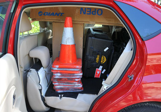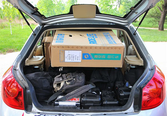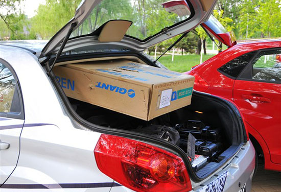 三廂車沒有完成任務(wù),這個大箱子裝進(jìn)去后,后備箱無法蓋嚴(yán)