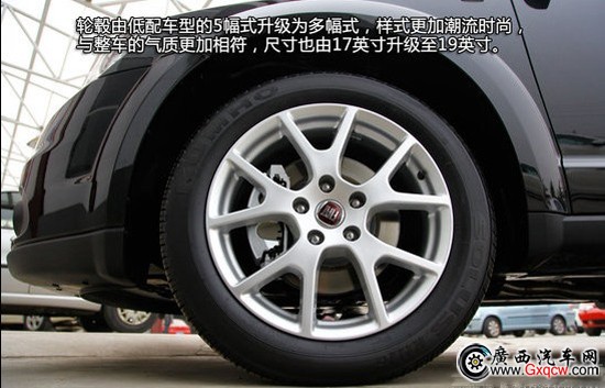 輪轂由低配車型的5幅式升級(jí)為多幅式,樣式更加潮流時(shí)尚,與整車的氣質(zhì)更加相符,尺寸也由17英寸升級(jí)至19英寸。車頂行李架在3.6L智能全驅(qū)版以及2.4L豪華導(dǎo)航版上是標(biāo)配的,鋁合金材質(zhì)的行李架做工不錯(cuò),另外還帶有兩根橫向的固定裝置。