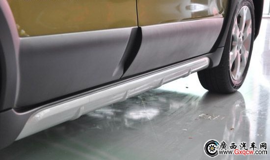 側(cè)面與老款沒(méi)有太多的改變。黑色大包圍配上車(chē)頂銀色的行李架,全身散發(fā)出一股濃郁的跨界的味道。