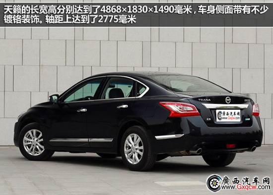 車身尺寸上,天籟的長寬高分別達(dá)到了4868×1830×1490毫米,車身側(cè)面帶有不少鍍鉻裝飾。軸距上達(dá)到了2775毫米,應(yīng)付全家出游完全不成問題。