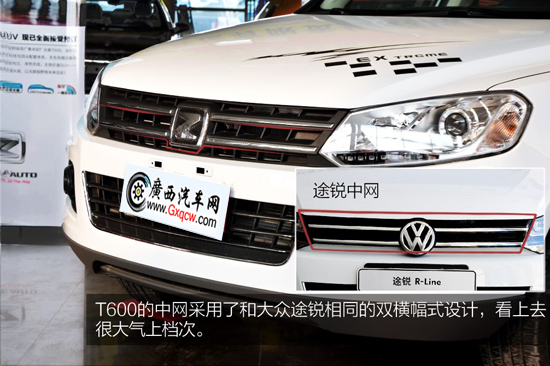 眾泰T600的外觀原創(chuàng)度很低,前臉是大眾途銳,特別是格柵和大燈的造型幾乎完全一樣;側(cè)面來自奧迪Q5,不論是要先還是車窗的線條設(shè)計都與Q5十分神似;尾部可以說是原創(chuàng)度最高的部位了,只是這個原創(chuàng)是否成功就褒貶不一了。但是整體而言,這個外形很容易被接受,因為真的非常眼熟。