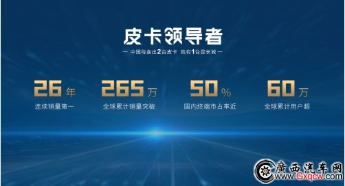 目前,長城皮卡已連續(xù)26年銷量第一,全球累計(jì)銷量突破265萬輛,國內(nèi)終端市占率近50%,中國每賣出兩臺皮卡,就有一臺是長城。長城炮誕生5年,全球累計(jì)用戶突破60萬,累計(jì)49個月銷量過萬,蟬聯(lián)中國皮卡銷量冠軍,創(chuàng)造了“長城炮速度”,讓皮卡走進(jìn)千家萬戶,成為真正的國民車。