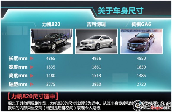 據(jù)了解,力帆820的長寬高分別為4865mm/1835mm/1480mm,軸距為2775mm。相比于其他同級別車型,力帆820的尺寸比例較為適中。從其車身寬度和軸距的參數(shù)來看,這款車的內部乘坐空間(特別是后排空間)表現(xiàn)令人期待。