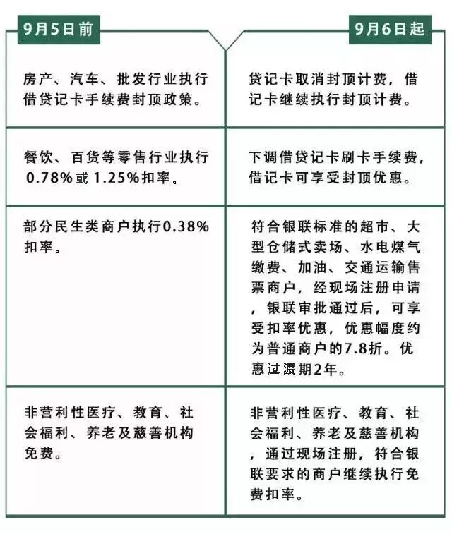 自9月6日起刷卡的新政策