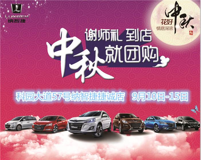 9月10日至15日,趕快來納智捷捷誠店,感受雙節(jié)帶給你的震撼特惠吧!讓優(yōu)惠翻倍,讓溫暖加分,我們在此恭候您的光臨