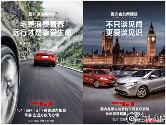 90年來,MG品牌一直致力于造年輕人的“夢想之車”。MG GT于今年6月在上汽位于英國伯明翰的長橋工廠與媒體首次見面,就引起了極大的關(guān)注。而在8月底成都車展上的首次國內(nèi)亮相,以及9月在上海正大廣場的“身臨奇鏡”創(chuàng)意秀和外灘品鑒會,MG GT俘獲了大批年輕人的心,成為消費(fèi)者心中又一輛“dream car”。就在剛剛過去的長假,MG GT推出“國慶系列”,“瘋狂購物不再愛,體驗(yàn)文化成摯愛”的國慶出境新潮流、“宅是浪費(fèi)青春,遠(yuǎn)行才是摯愛生命”的國慶旅游新動向、“不只談見聞,更愛談見識”的國慶會友新話題等,每日一個(gè)主題,更讓年輕族群深感如遇知音。